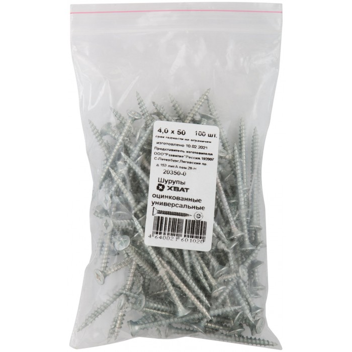 Шурупы оцинкованные, универсальные 4 х 50 100 шт Фасовка (20350-0)