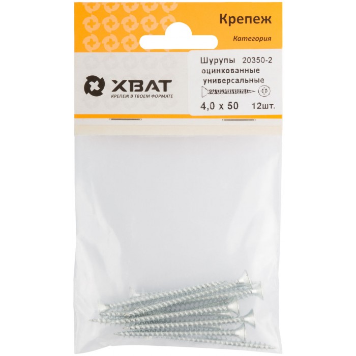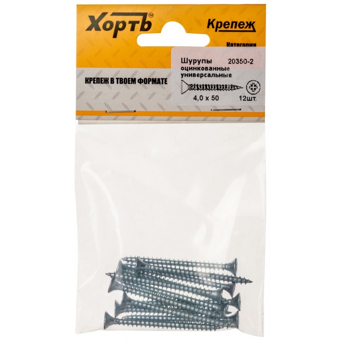 Шурупы оцинкованные, универсальные 4 х 50 (фасовка 12 шт) (20350-2)