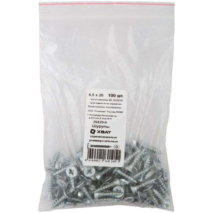 Шурупы оцинкованные, универсальные 4,5 х 20 100 шт Фасовка (20420-0)