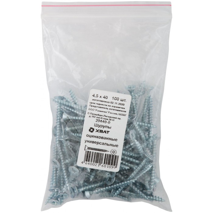 Шурупы оцинкованные, универсальные 4,5 х 40 100 шт Фасовка (20440-0)