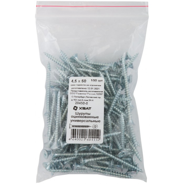 Шурупы оцинкованные, универсальные 4,5 х 50 100 шт Фасовка (20450-0)