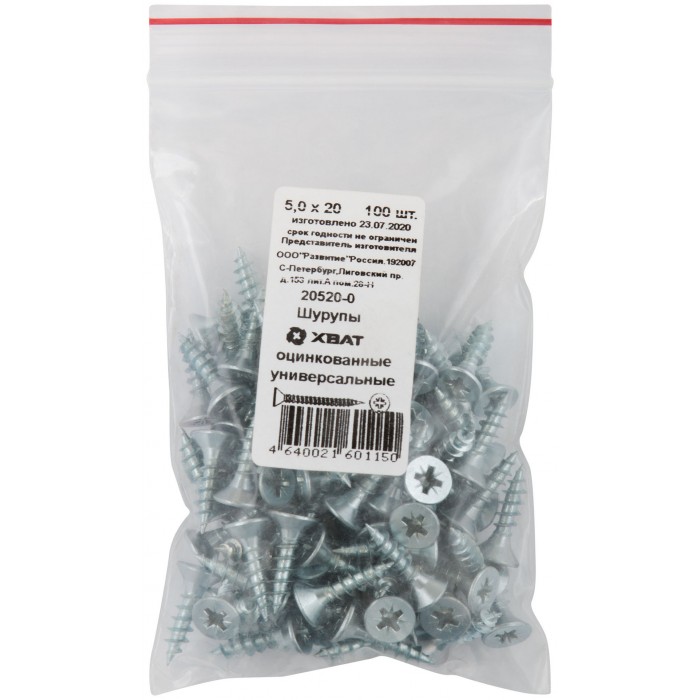 Шурупы оцинкованные, универсальные 5 х 20 100 шт Фасовка (20520-0)