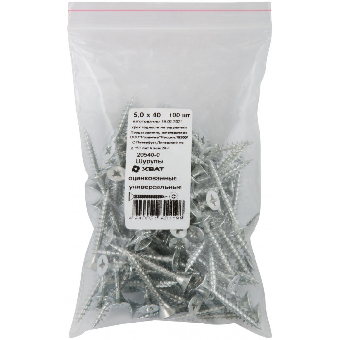 Шурупы оцинкованные, универсальные 5 х 40 100 шт Фасовка (20540-0)