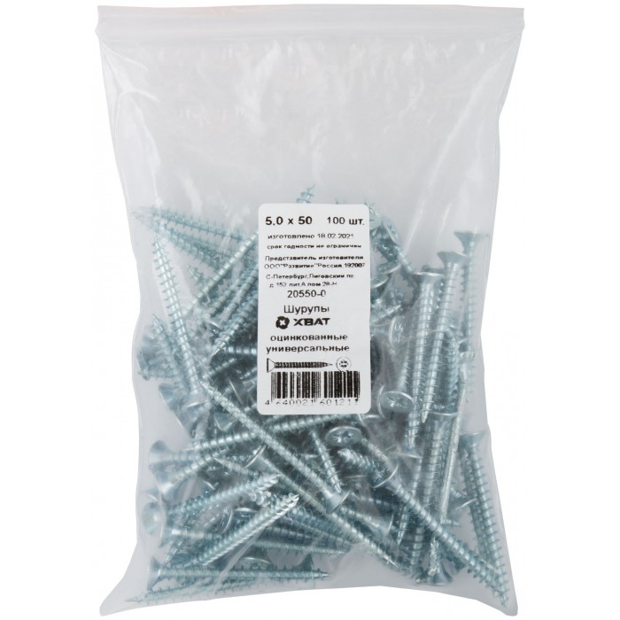 Шурупы оцинкованные, универсальные 5 х 50 100 шт Фасовка (20550-0)