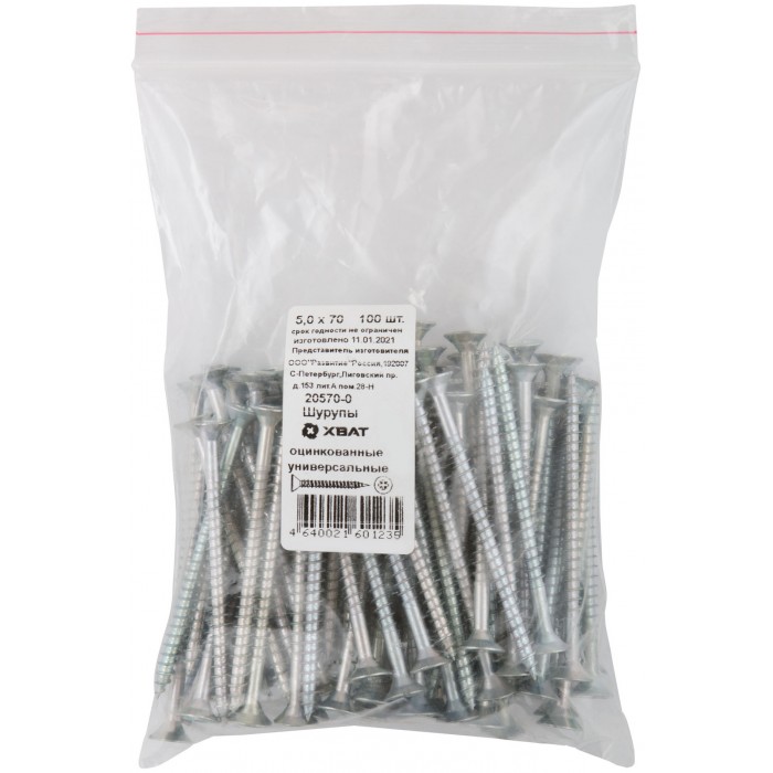 Шурупы оцинкованные, универсальные 5 х 70 100 шт Фасовка (20570-0)
