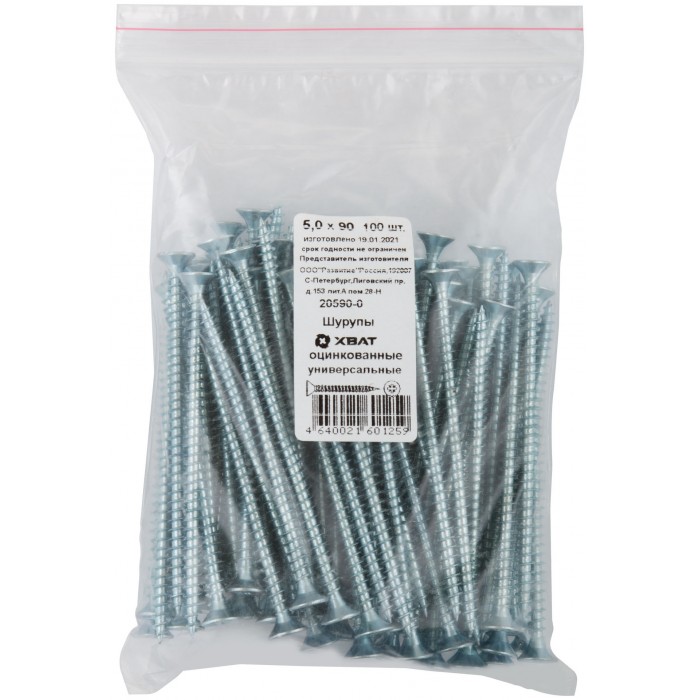 Шурупы оцинкованные, универсальные 5 х 90 100 шт Фасовка (20590-0)