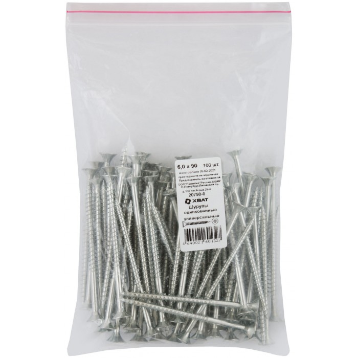 Шурупы оцинкованные, универсальные 6 х 90 100 шт Фасовка (20790-0)