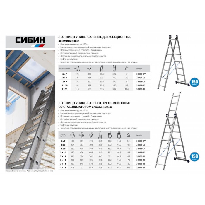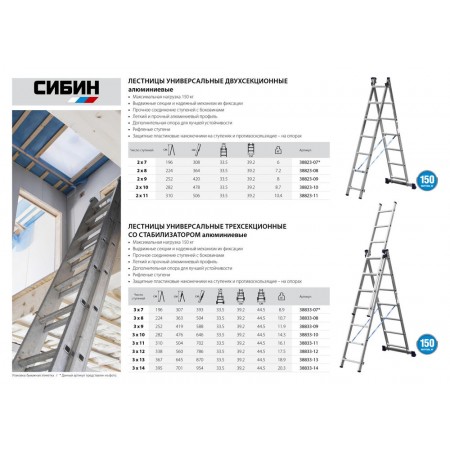 Лестницы СИБИН предназначена для выполнения различных хозяйственных работ. Может использоваться как стремянка и как приставная раздвижная лестница. Надежная конструкция в сочетании с высококачественными материалами обеспечивают легкость и удобство в эксплуатации.