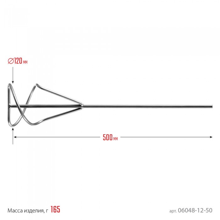 Миксер-насадка предназначен для перемешивания сухих и жидких песчано-гравийных смесей, в том числе плиточного клея, штукатурки и шпатлевки. Используется с дрелями и миксерами, обеспечивающими крепление шестигранного хвостовика насадки.