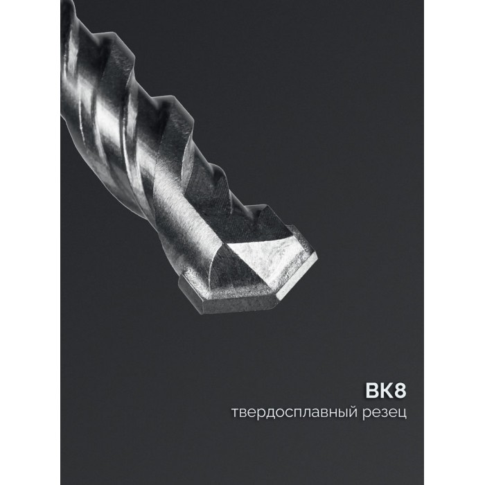 • Классическая двухрезцовая форма наконечника бура обеспечивает быстрое вхождение в материал и быстро отводит шлам в спираль.