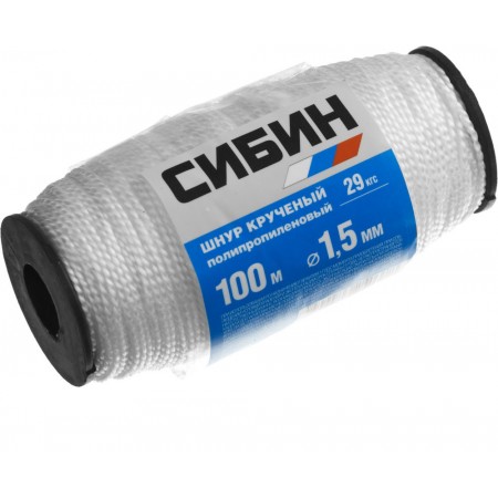 Полипропиленовый шнур 1.5 мм, 100 м, 29 кгс, крученый, катушка СИБИН 50528
