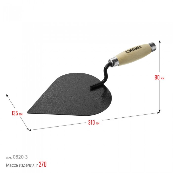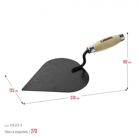 Кельма штукатура 190 х 135 мм, деревянная ручка СИБИН 0820-3_z01