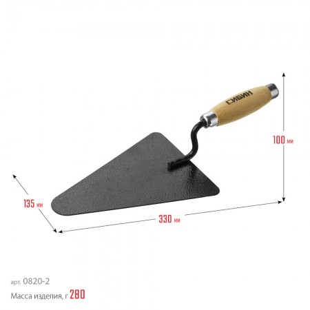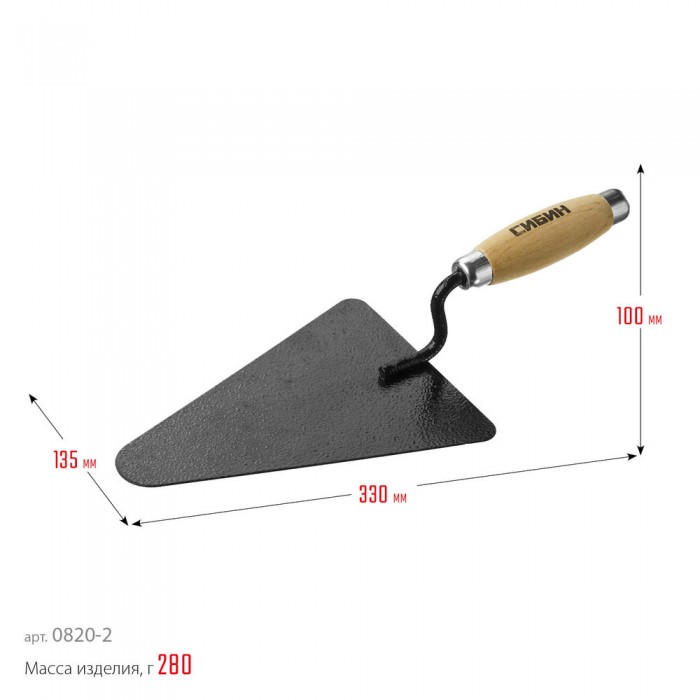 Кельма бетонщика 195 х 135 мм, деревянная ручка СИБИН 0820-2_z01