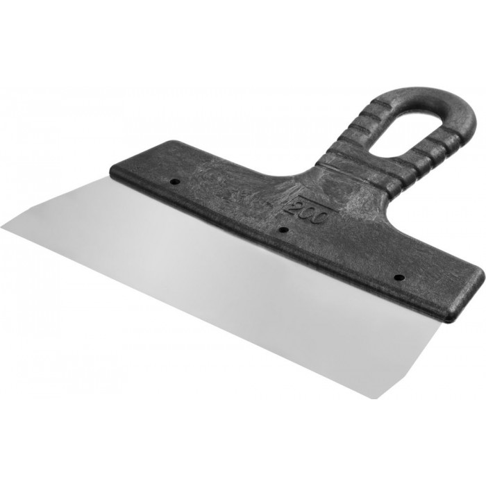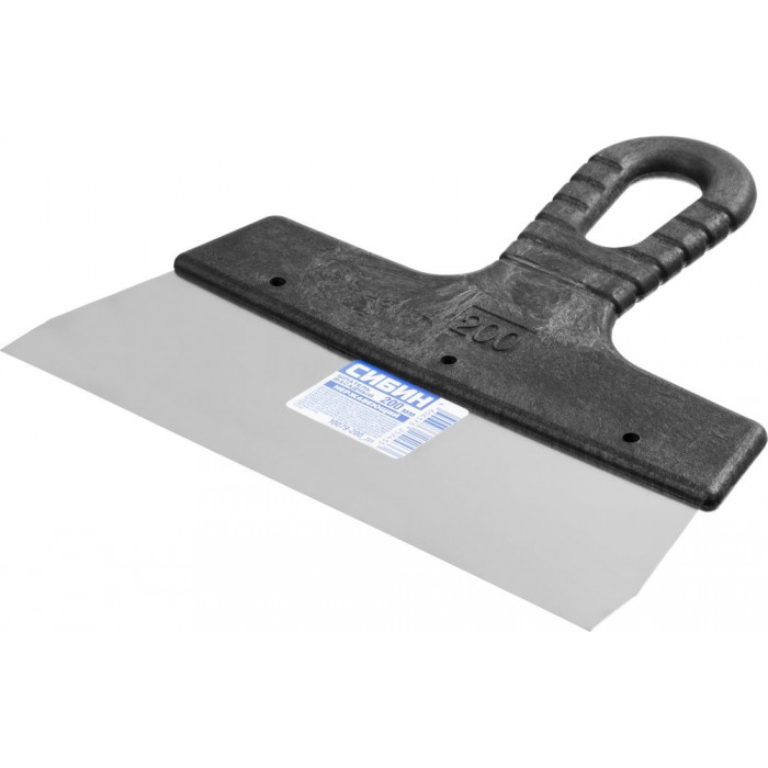Шпатель СИБИН - отличный выбор для строительства и ремонта! Полотно из нержавеющей стали обеспечивает надежность и долгий срок службы инструмента, а удобная пластмассовая рукоятка создает условия для комфортной работы. Незаменимый инструмент при проведении работ на больших поверхностях.
