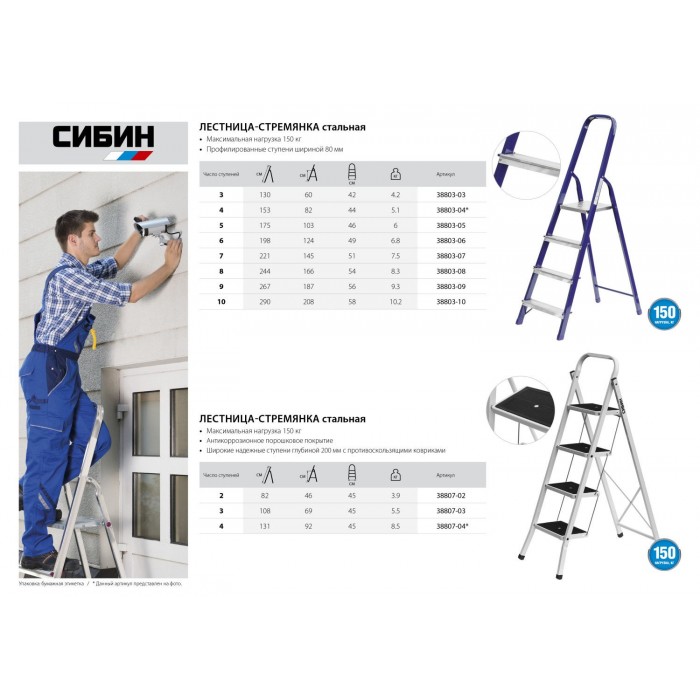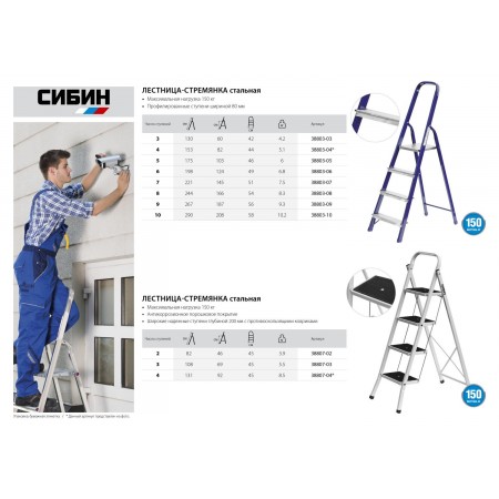 СИБИН 3 ступени, 60 см, стальная стремянка (38803-03)