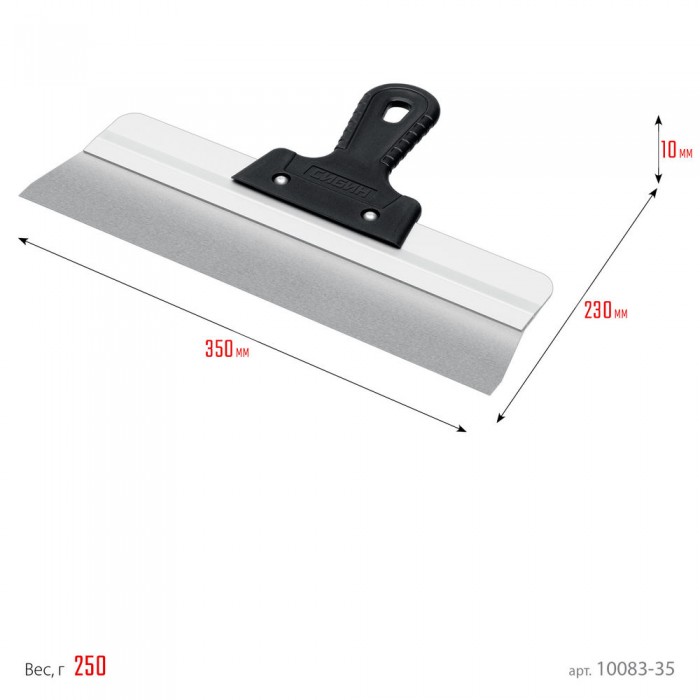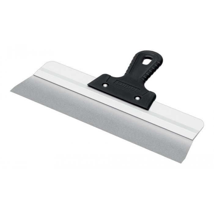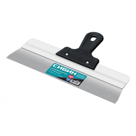 Шпатель СИБИН - отличный выбор для строительства и ремонта! Полотно из нержавеющей стали обеспечивает надежность и долгий срок службы инструмента, алюминиевая направляющая предотвращает изгиб полотна, а эргономичная однокомпонентная рукоятка создает условия для комфортной работы.