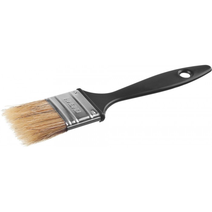 Смешанная щетина обеспечит прекрасное нанесение различных видов ЛКМ, щетина кисти надежно закреплена стальным бандажом, а наличие удобной и лекгой пластмассовой рукоятки обеспечит комфортную работу