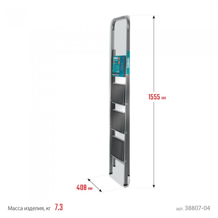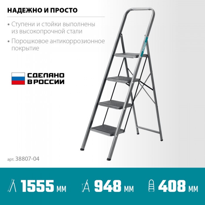 Стальная стремянка 4 ступени 95 см c широкими обрезиненными ступенями СИБИН 38807-04_z02