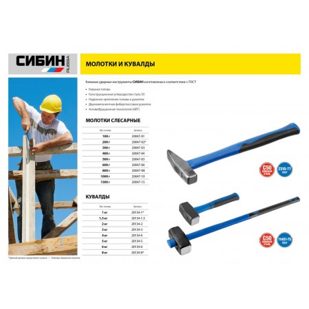 Кувалда с удлинённой фиберглассовой рукояткой 5 кг СИБИН 20134-5