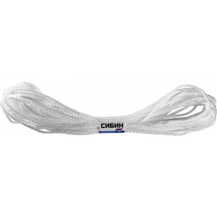 СИБИН 5 мм, 20 м, вязаный, с сердечником, белый, полипропиленовый шнур (50255)