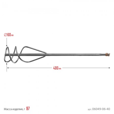 Миксер-насадка предназначен для перемешивания сухих и жидких песчано-гравийных смесей, в том числе плиточного клея, штукатурки и шпатлевки. Используется с дрелями и миксерами, обеспечивающими крепление SDS+ хвостовика насадки.