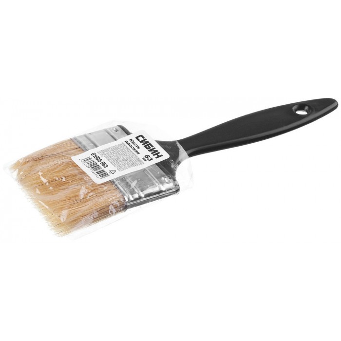 Кисть плоская 63 мм 2.5" светлая смешанная щетина пластиковая ручка все виды ЛКМ СИБИН 01008-063