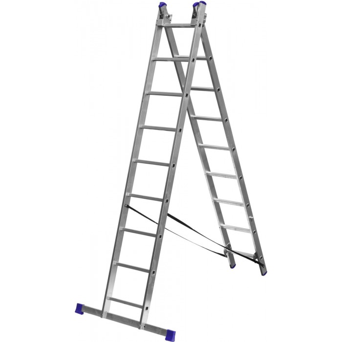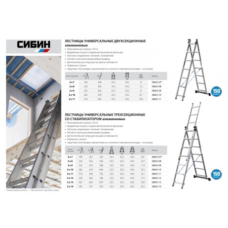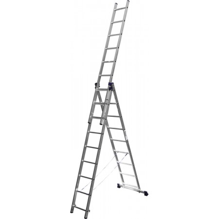СИБИН 9 ступеней, со стабилизатором, алюминиевая, трехсекционная лестница (38833-09)