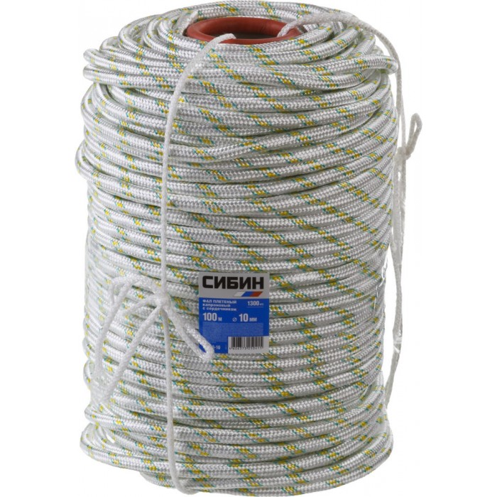 Плетеный капроновый фал с сердечником d 10 мм 24-прядный 100 м СИБИН 50220-10