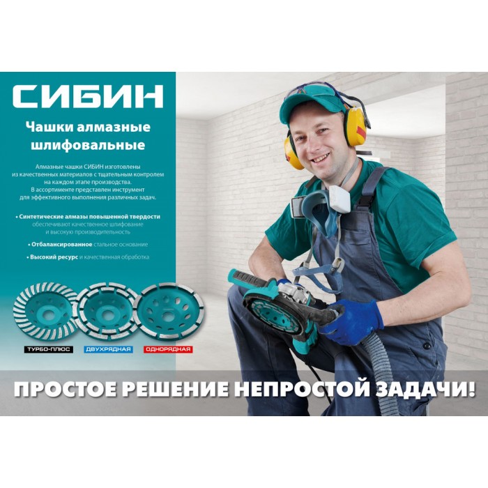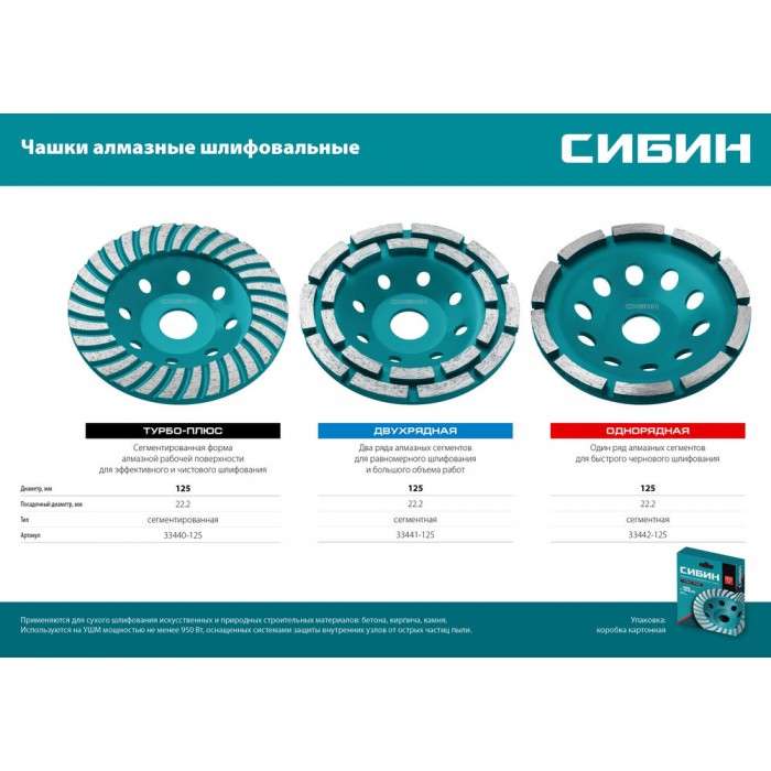 Однорядная алмазная шлифовальная чашка d 125 мм СИБИН 33442-125