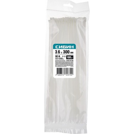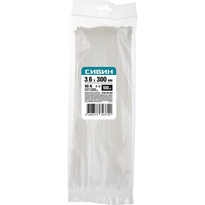 Хомуты-стяжки белые 3.6 x 300 мм нейлон РА66 100 шт СИБИН ХС-Б 3786-36-300