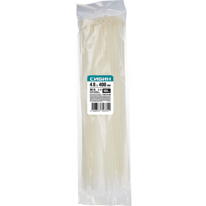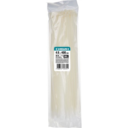 Хомуты-стяжки белые 4.8 x 400 мм нейлон РА66 100 шт СИБИН ХС-Б 3786-48-400
