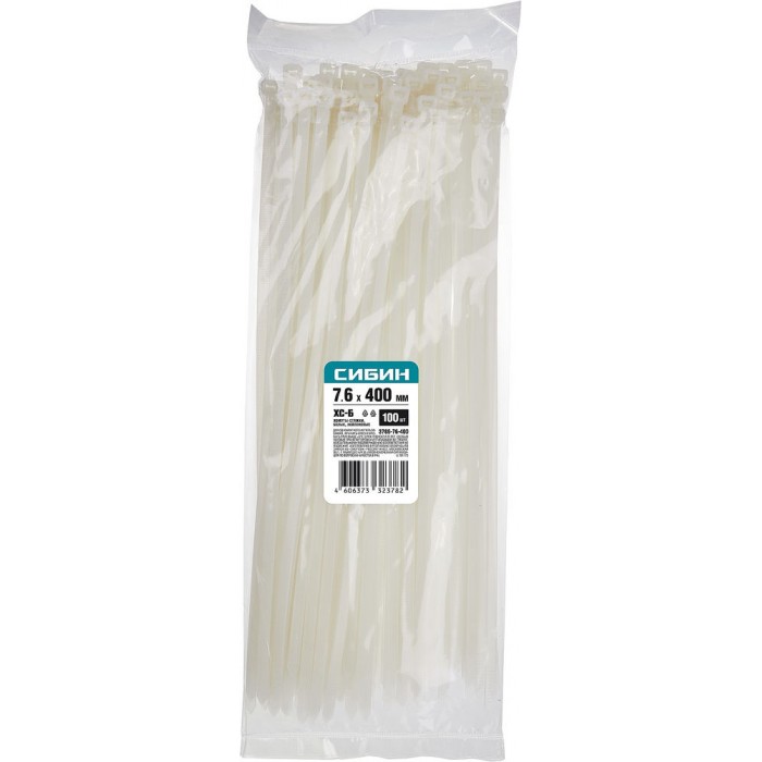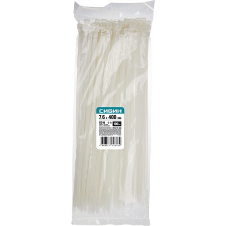 Хомуты-стяжки белые 7.6 x 400 мм нейлон РА66 100 шт СИБИН ХС-Б 3786-76-400