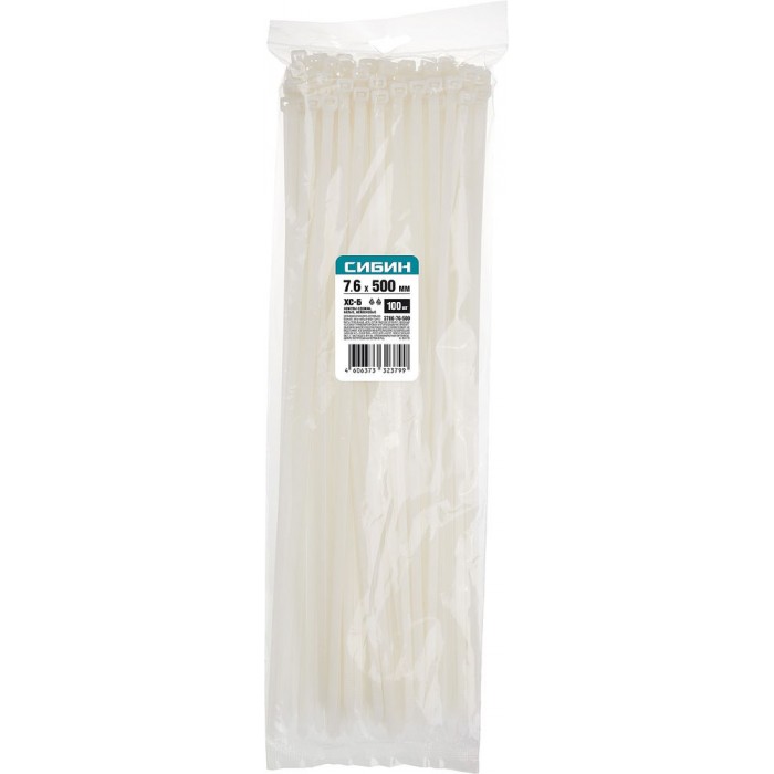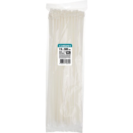 Хомуты-стяжки белые 7.6 x 500 мм нейлон РА66 100 шт СИБИН ХС-Б 3786-76-500