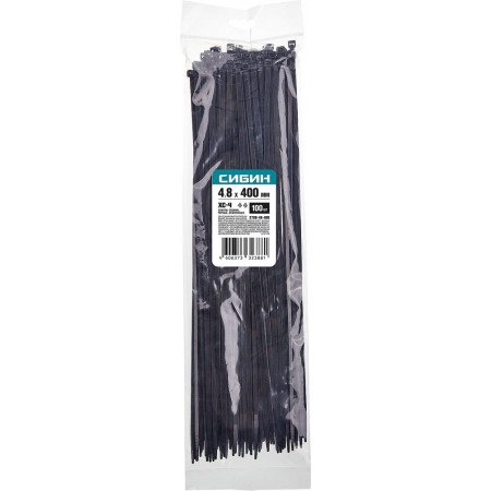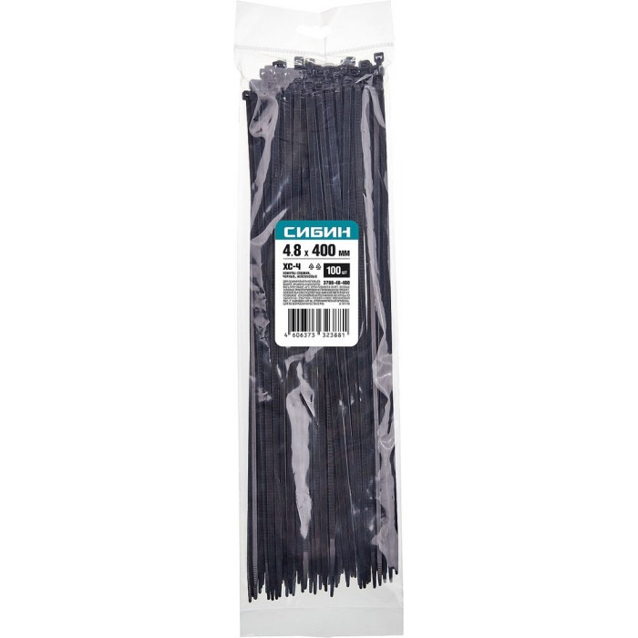 Хомуты-стяжки черные 4.8 x 400 мм нейлон РА66 100 шт СИБИН ХС-Ч 3788-48-400