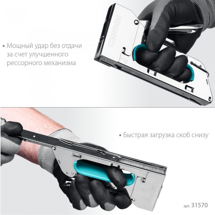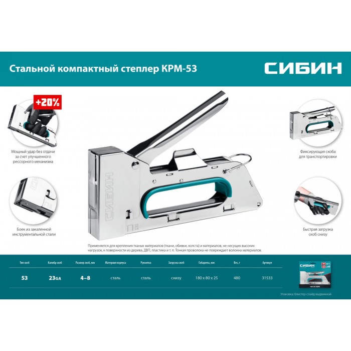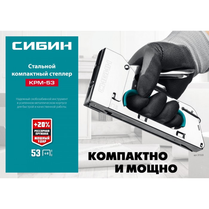 Стальной компактный степлер тип 53 A/10/JT21 23GA 4 - 8 мм СИБИН КРМ-53 31533