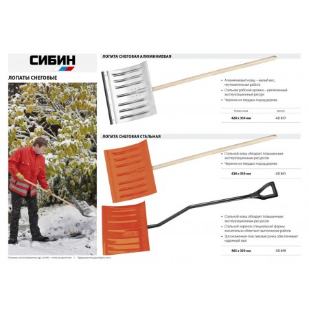 Снеговые лопаты СИБИН - оптимальное решение для уборки снега. Надежная конструкция и отличные эксплуатационные характеристики делают их незаменимыми в зимний период.