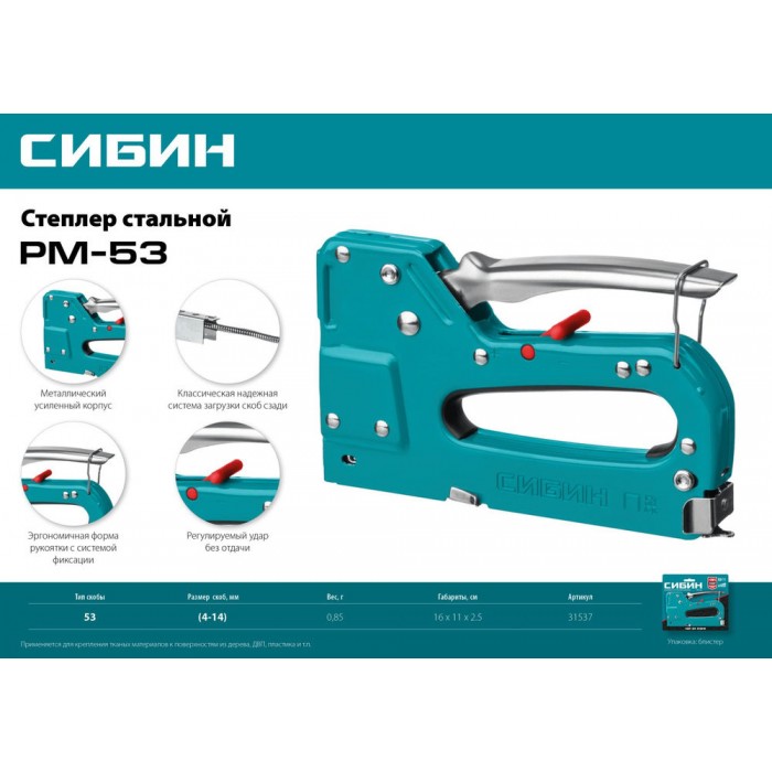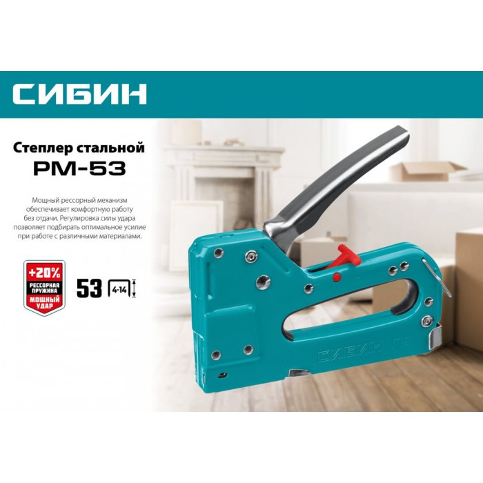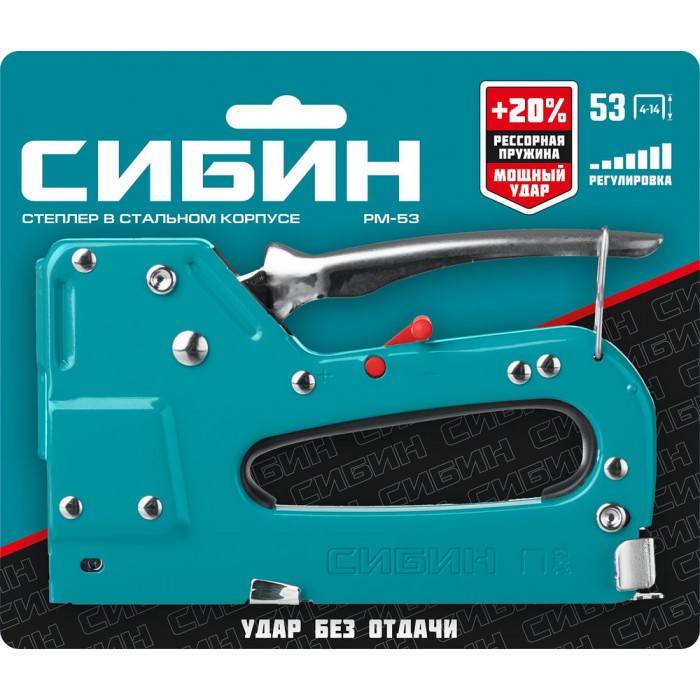Стальной рессорный степлер тип 53 A/10/JT21 23GA 4 - 14 мм СИБИН РМ-53 31537