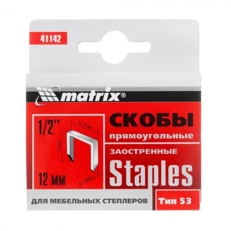 Скобы, 12 мм, для мебельного степлера, заостренные, тип 53, 1000 шт Matrix (41142)