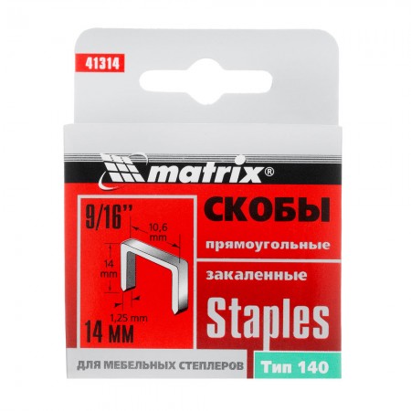 Скобы, 14 мм, для мебельного степлера, закаленные, тип 140, 1000 шт Matrix (41314)