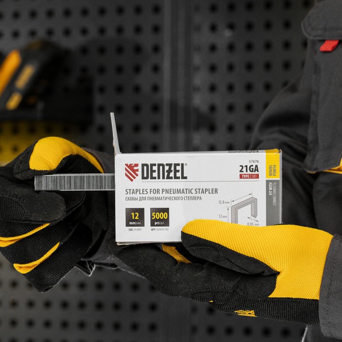 Скобы 21GA для пнев. степл., 12мм, шир. - 0,95мм, тол. - 0,6мм, шир. скобы - 12,8мм, 5000шт Denzel (57676)