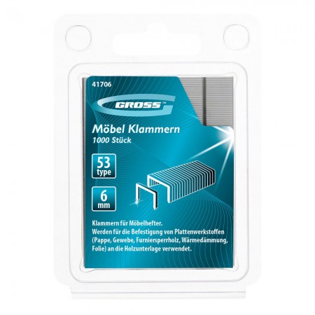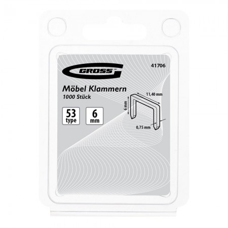 Скобы, 6 мм, для мебельного степлера усиленные, тип 53, 1000 шт Gross (41706)