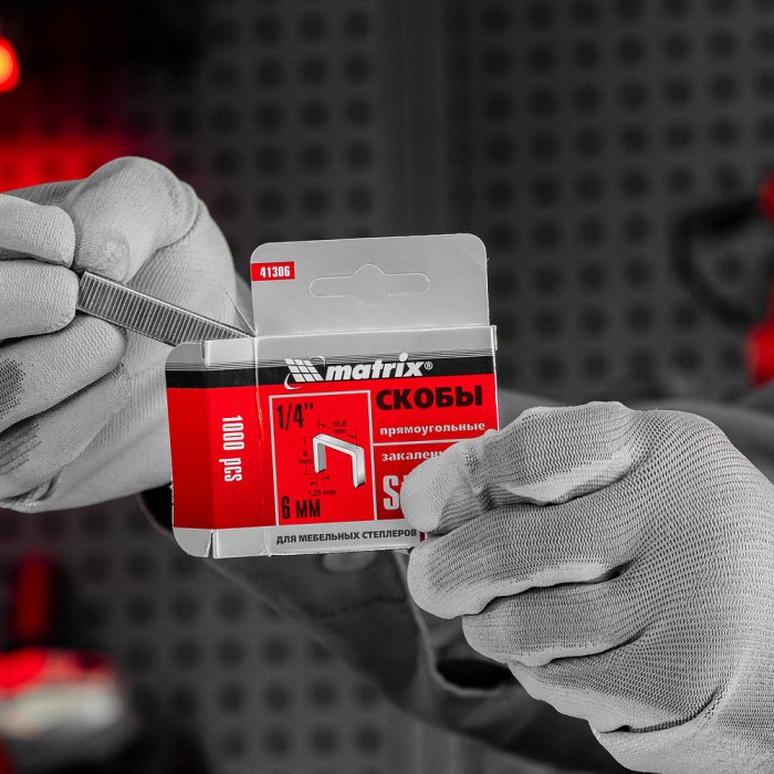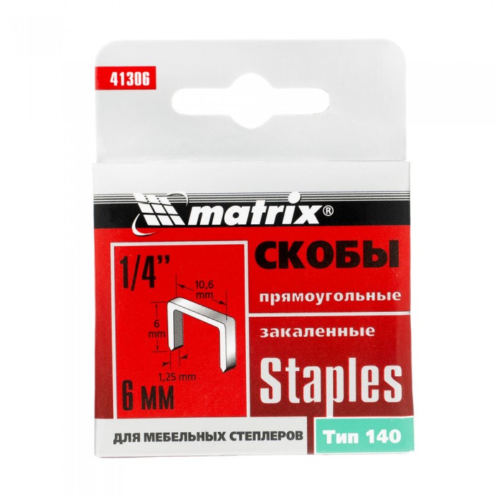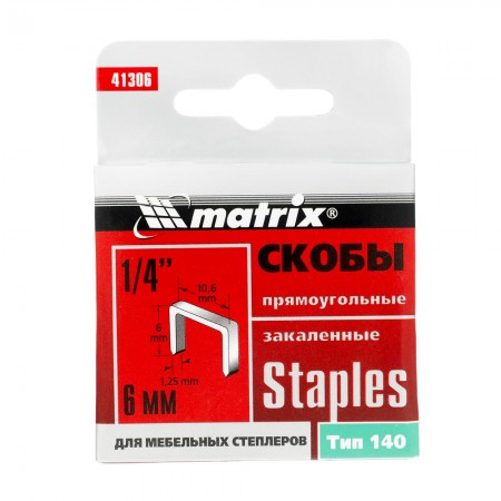 Скобы, 6 мм, для мебельного степлера, закаленные, тип 140, 1000 шт Matrix (41306)