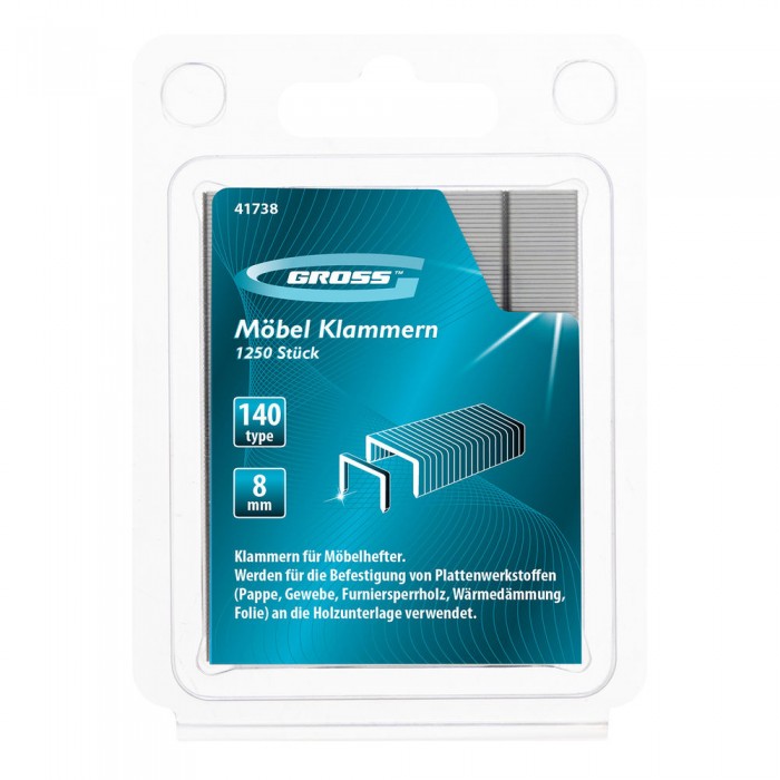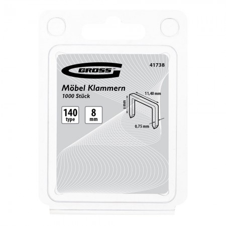 Скобы, 8 мм, для мебельного степлера, усиленные, тип 140,1250 шт Gross (41738)