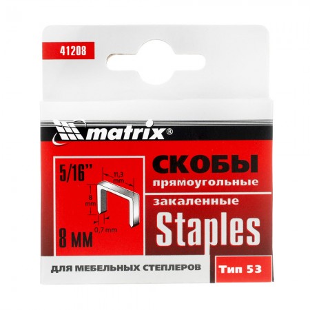 Скобы, 8 мм, для мебельного степлера, закаленные, тип 53, 1000 шт Matrix (41208)