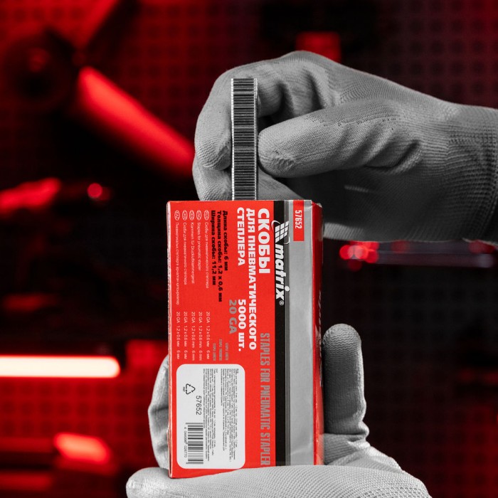 Скобы для пневматического степлера, 6 мм, ширина 1.2 мм, толщина 0.6 мм, ширина скобы 11.2 мм, 5000 шт Matrix (57652)