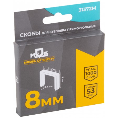 Скобы для степлера закаленные 11,3 мм х 0,7 мм, (узкие тип 53) 8 мм, 1000 шт. (31372М)