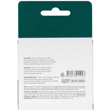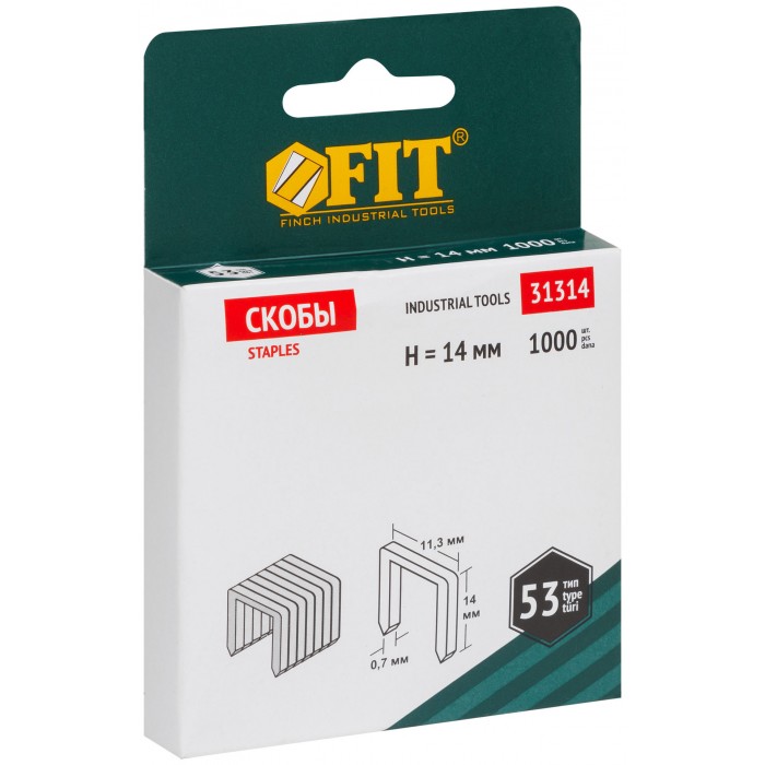 Скобы для степлера закалённые прямоугольные 11,3 мм х 0,7 мм (узкие тип 53) 14 мм, 1000 шт. (31314)