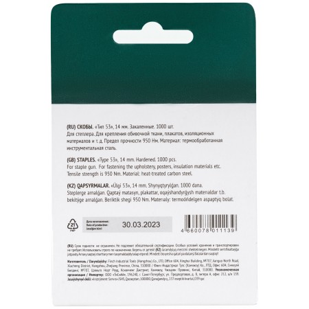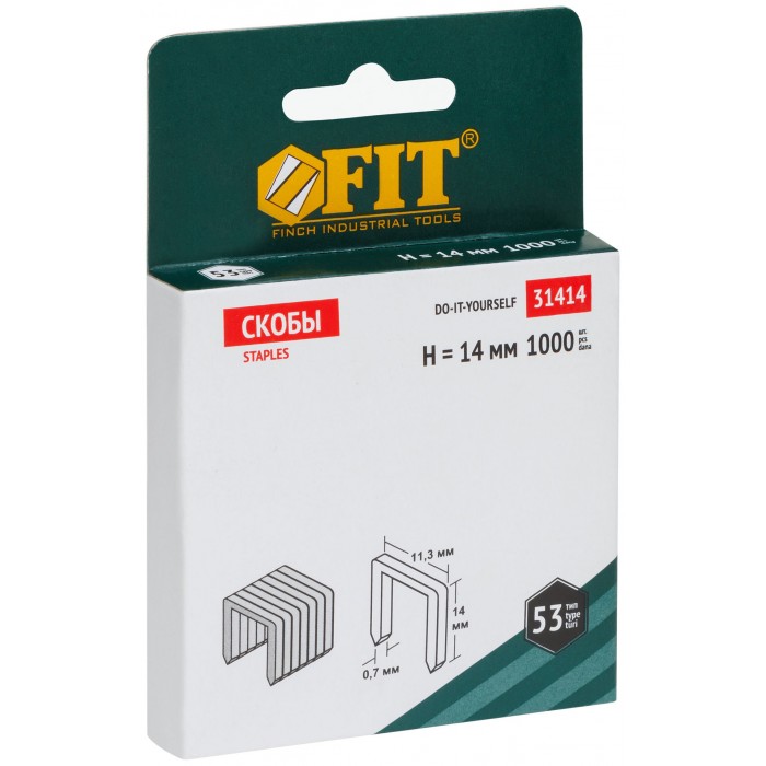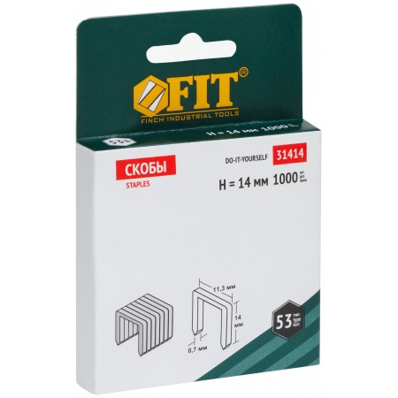 Скобы для степлера закалённые прямоугольные 11,3 мм х 0,7 мм (узкие тип 53) 14 мм, 1000 шт. (31414)