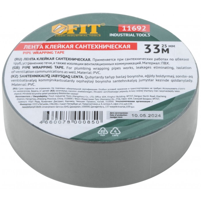 Для сантехнических работ по обвязке труб, устранению течи, изоляции вентиляционных коммуникаций. Длина: 33 м.