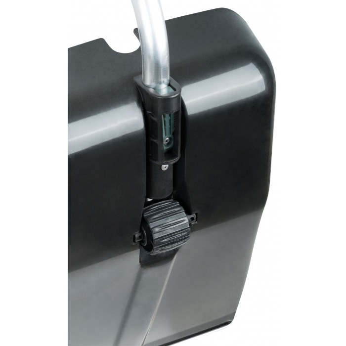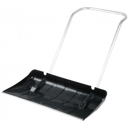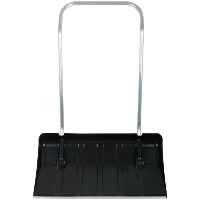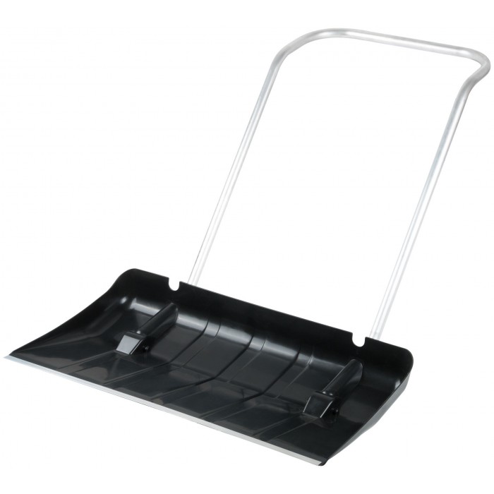 Скрепер для уборки снега, на колесиках. Формованный ковш с ребрами жесткости, с алюминиевой планкой. Материал: полипропилен, сталь, алюминий.